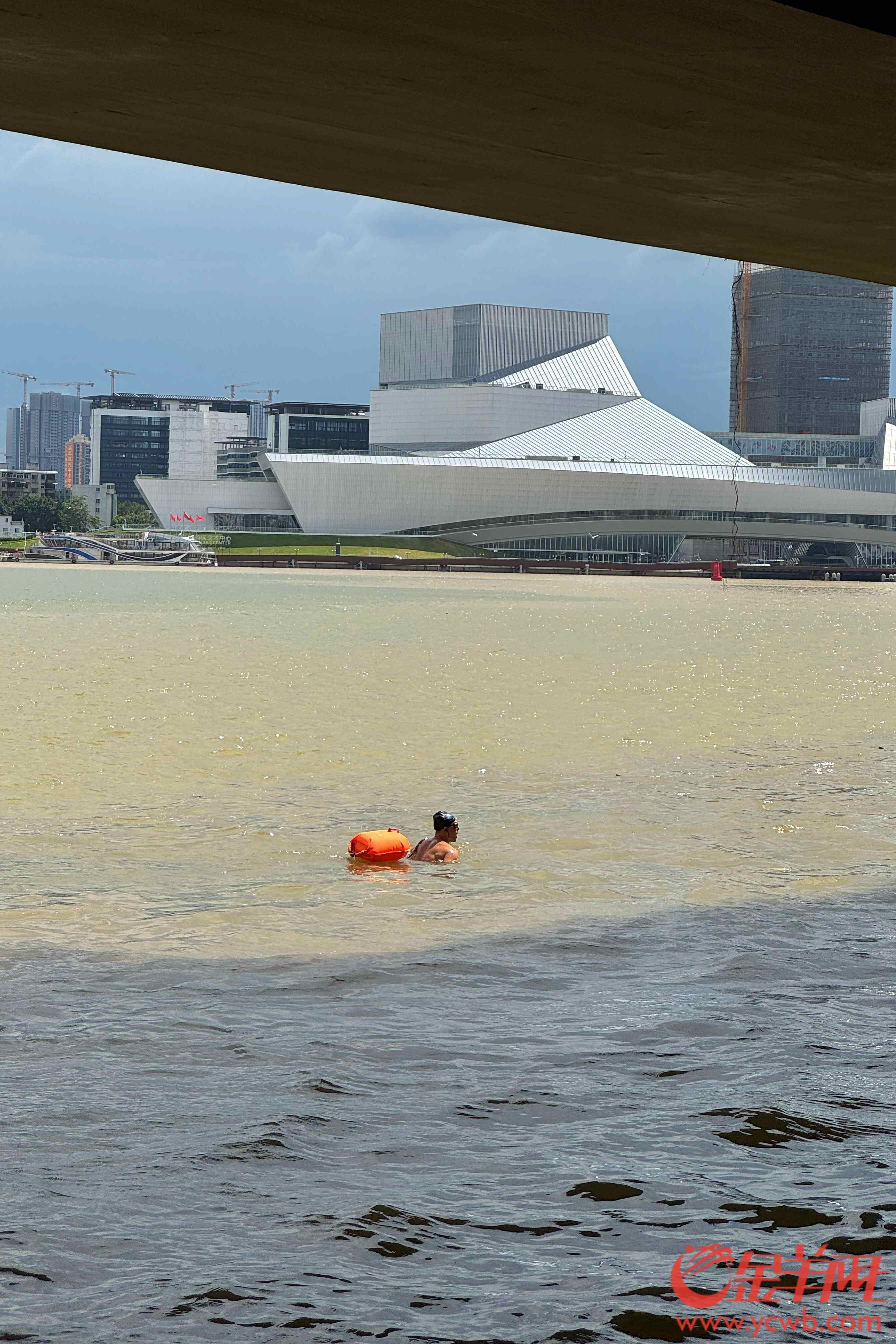 受上游来水及下游潮汐双重影响,6月26日至28日,珠江广州河段迎来今年以来水位最高的天文大潮,最大潮差达2.7米。今日(27日)中午,记者实地探访发现,长堤亲水平台已被江水漫过,沙基涌水位上涨,吸引市民游客驻足观赏。尽管天气炎热,不少泳客选择下江消暑,但安全仍需警惕。