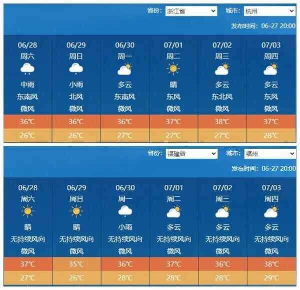 未来几天,江南、华南多地都逃不开闷热的掌控了。城市当中,杭州、福州高温或将连续6天打卡,最高时可达38℃。