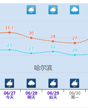 未来几天,降雨还将在东北展开,气温也将有所下降。像哈尔滨,最高气温从接近高温逐渐降至27℃左右。