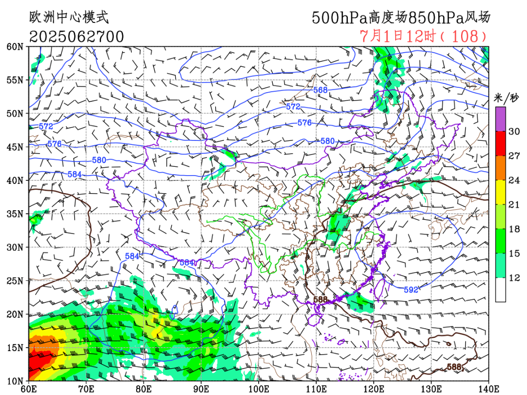 从6月30日开始,副热带高压将大幅西伸北抬,导致湿热空气向北输送,因此7月初中东部高温、闷热范围会明显扩大,或囊括华北中南部到华南的大片区域。