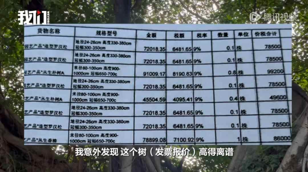 按发票金额计算,0.1株黑松采购价为78500元,一棵黑松的采购价就达到785000元。举报人江先生称,他当年卖给“工头”余云的黑松才38000元一棵,采购自江苏的苗木种植户冯先生。
