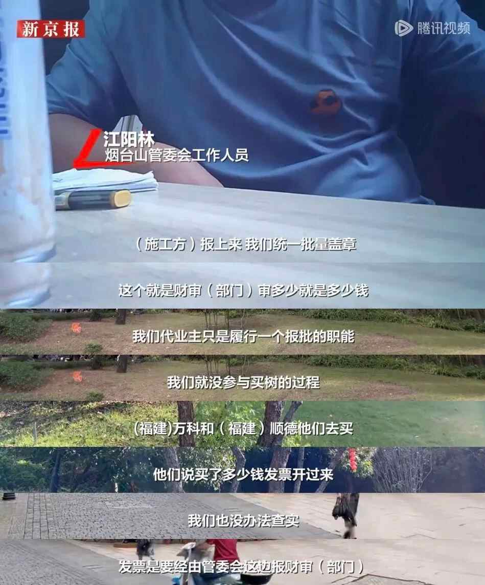 举报人江先生称,这些“天价树”属于烟台山公园的景区改造绿化项目,由一位叫余云的“工头”向他采购,事后两人产生了经济纠纷。