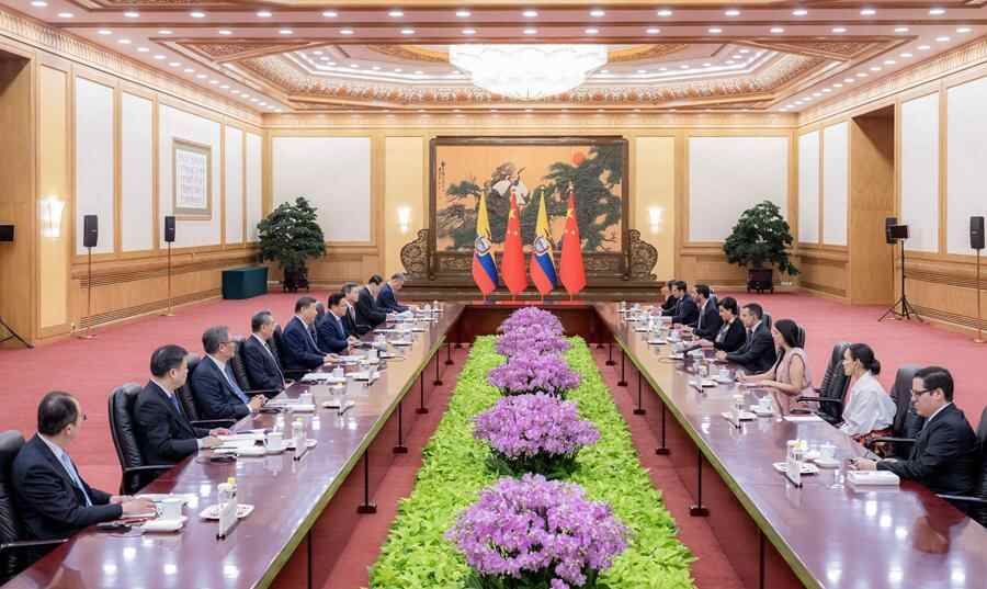 习近平指出,今年是中厄建交45周年,两国关系发展势头良好。厄瓜多尔加入共建“一带一路”大家庭,双方签署自由贸易协定,在能源、矿业、电力、基础设施建设等领域开展了富有成效的合作。中方始终从战略高度和长远角度看待和发展中厄关系,愿同厄方一道努力,推动中厄全面战略伙伴关系不断走深走实,更好造福两国人民。