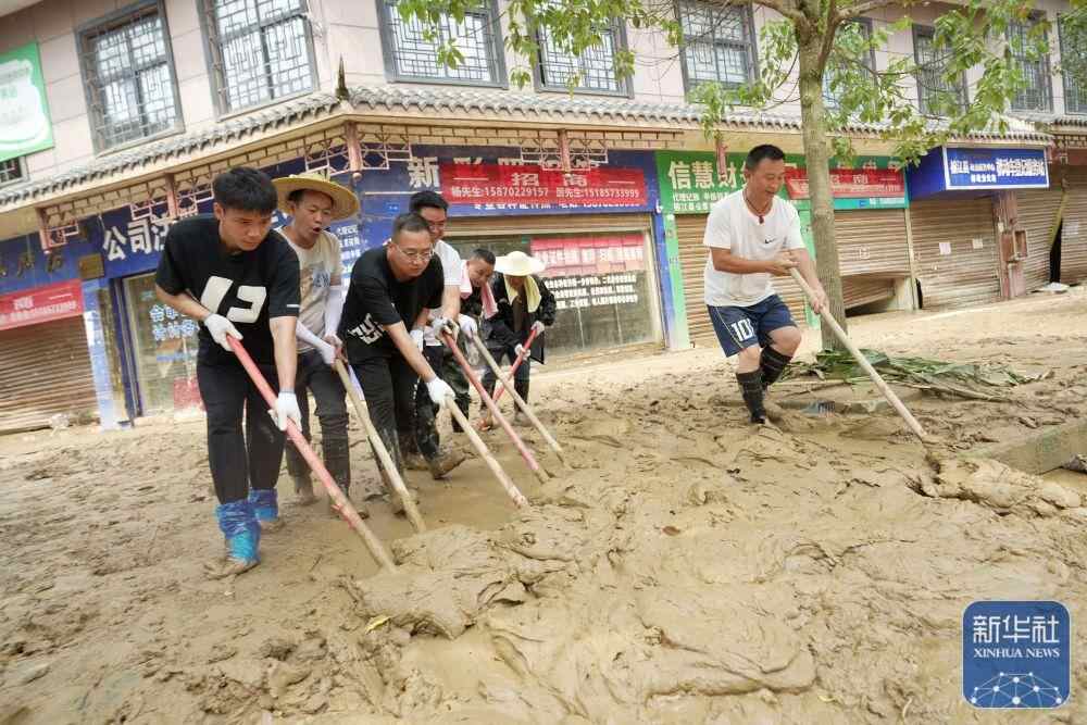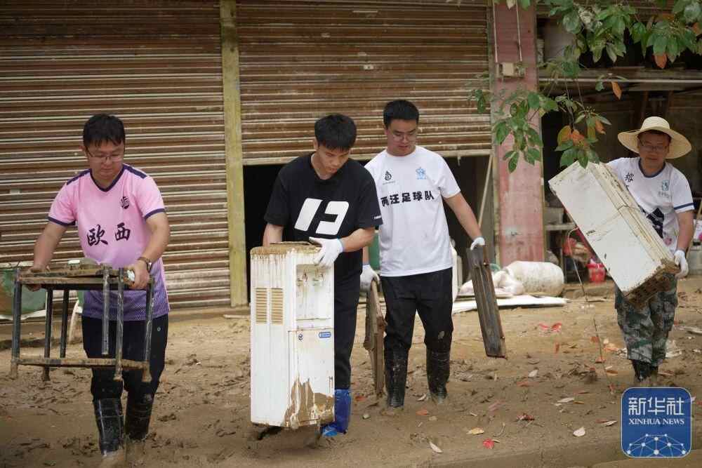 6月26日,林进标在榕江一中附近参与灾后清淤。