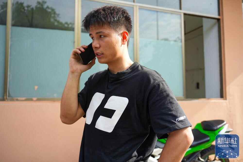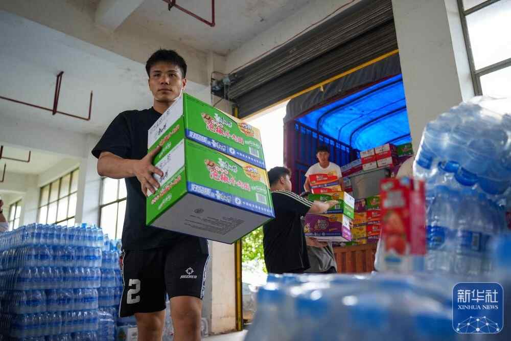6月25日,林进标在贵州省榕江县工业园区内搬运救援物资。