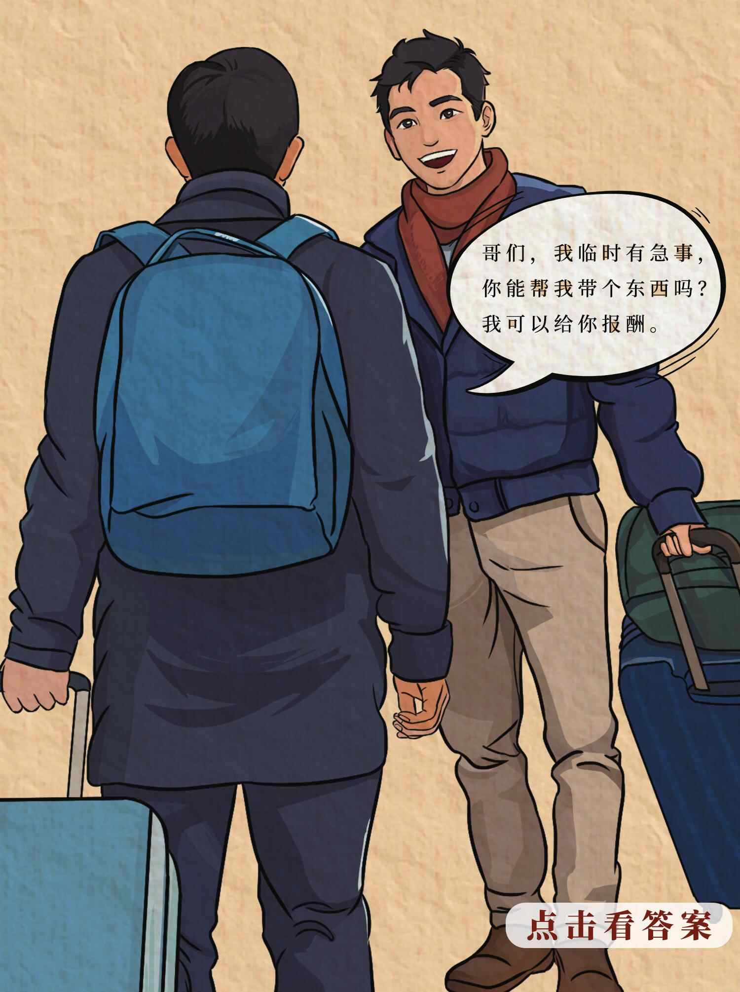 B. 在泰国旅游时,看到有人在海边吸食大麻