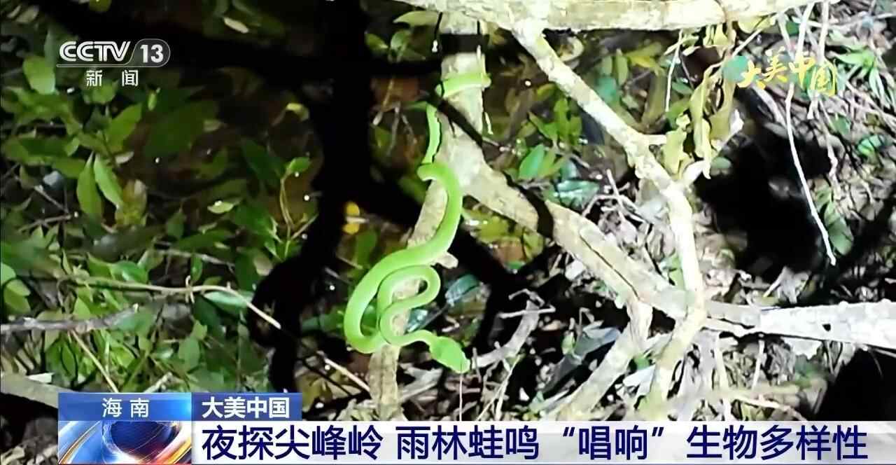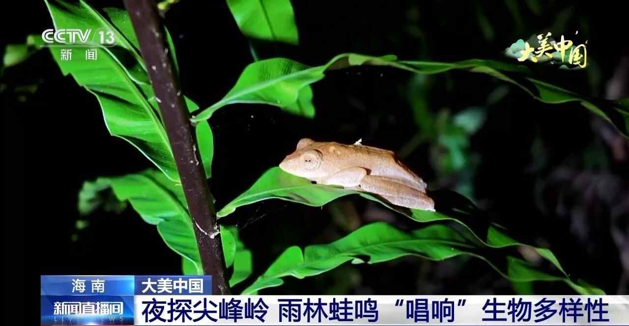 夜探海南热带雨林国家公园尖峰岭片区会有什么发现?前几天,总台记者在那里拍摄到海南拟髭蟾、红蹼树蛙、脆皮大头蛙等多种珍稀、特有蛙类,并记录到顶级猎食者福建竹叶青的活动。