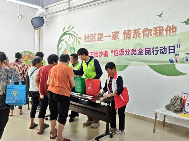 为积极引导社区家庭树立生活垃圾分类理念,推动社区家庭参与生活垃圾减量、无害化处理及资源循环利用行动,万顷沙镇垃圾分类督导组携手街坊之家,于 6 月 24 日共同开展“垃圾分类全民行动日”宣传活动。