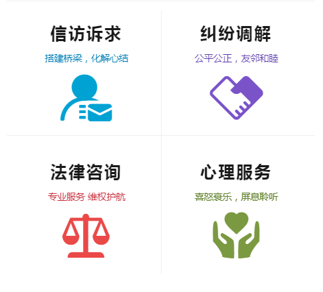中心按照“1厅+N室”模式,设置群众来访接待厅、矛盾纠纷调解室、公共法律和社会心理服务室、共享法庭、检察服务和行政复议听证室、风险会商研判和综合指挥调度室、进驻人员办公室等功能场室,推进受理接待、纠纷调解、司法确认、行政复议、法律援助、法律监督、在线诉讼、法治宣传等业务在综治中心实质性办理。