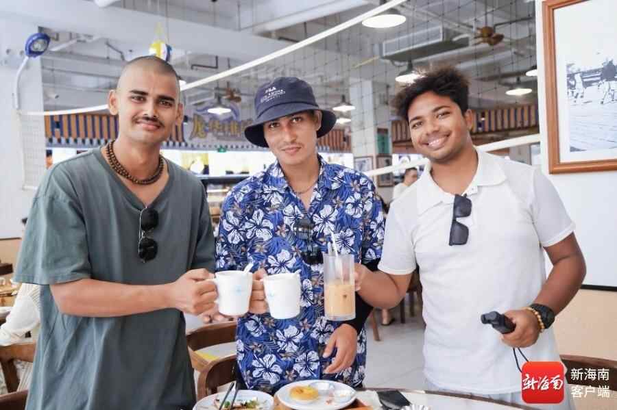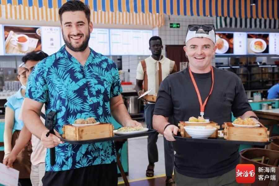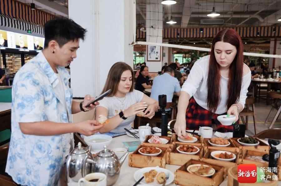 茶园里,时光仿佛放缓。老茶客们围坐闲谈、读报;食客熟稔地挑选茶点。外国博主们也入乡随俗,落座或排队。一杯醇厚海南咖啡、一碗酱香弹滑的腌粉,配上晶莹剔透的虾饺、斑斓糕的清香、软糯入味的凤爪,这些寻常茶点成了他们品读海南生活的窗口。