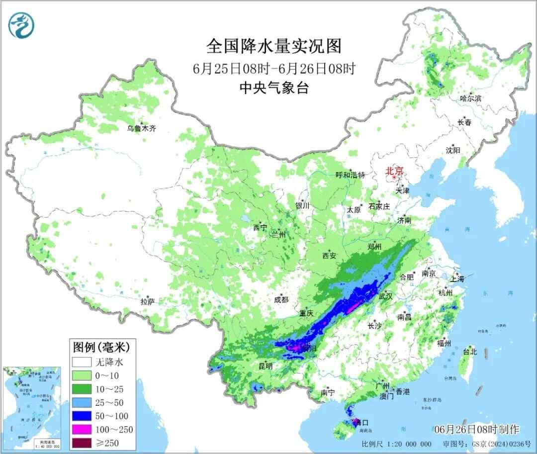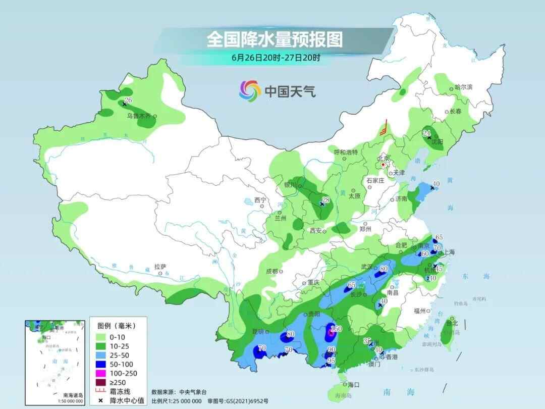未来几天随着副热带高压逐渐退回到海上,同时季风输送水汽、北方有高空槽过境,我国还将有大范围降水出现,但整体面弱点强、多分散对流。30日起副热带高压强势回归,梅雨季或将结束,主雨带北抬。