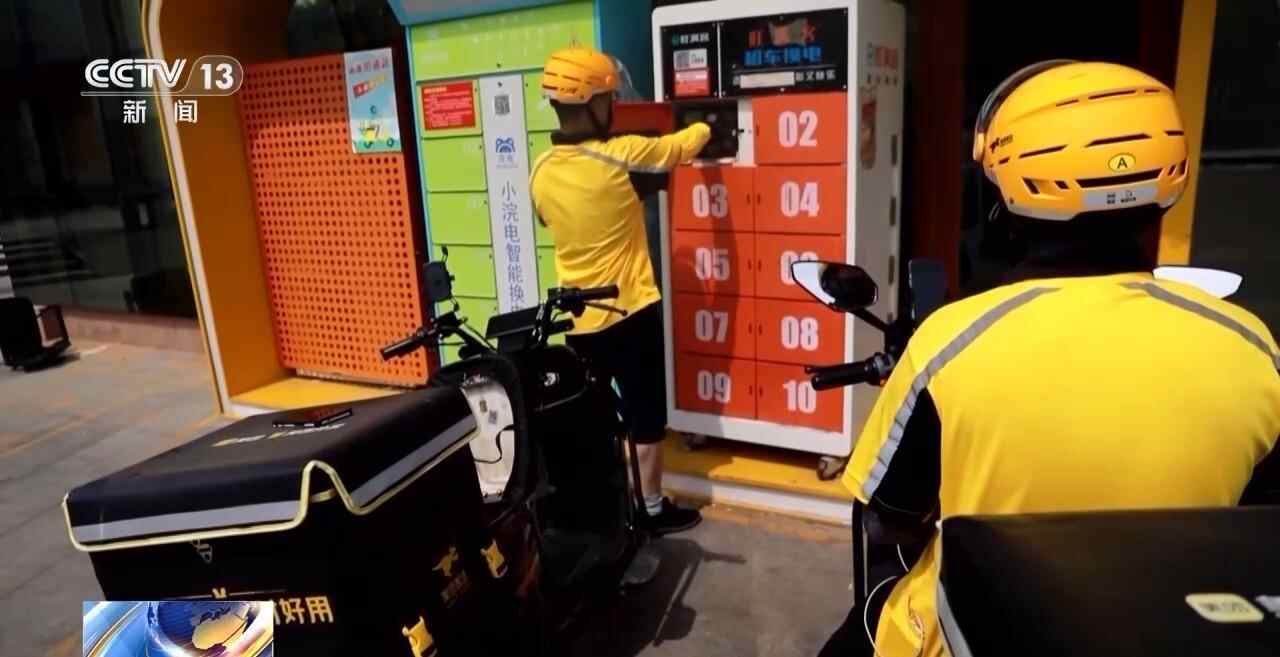 外卖员 崔凤洋:给我们提供了很方便的换电站,我们如果高峰期没有电了,可以来这里换电,如果中午非常热,感到身体有点难受可以到这来,也提供解暑药品。