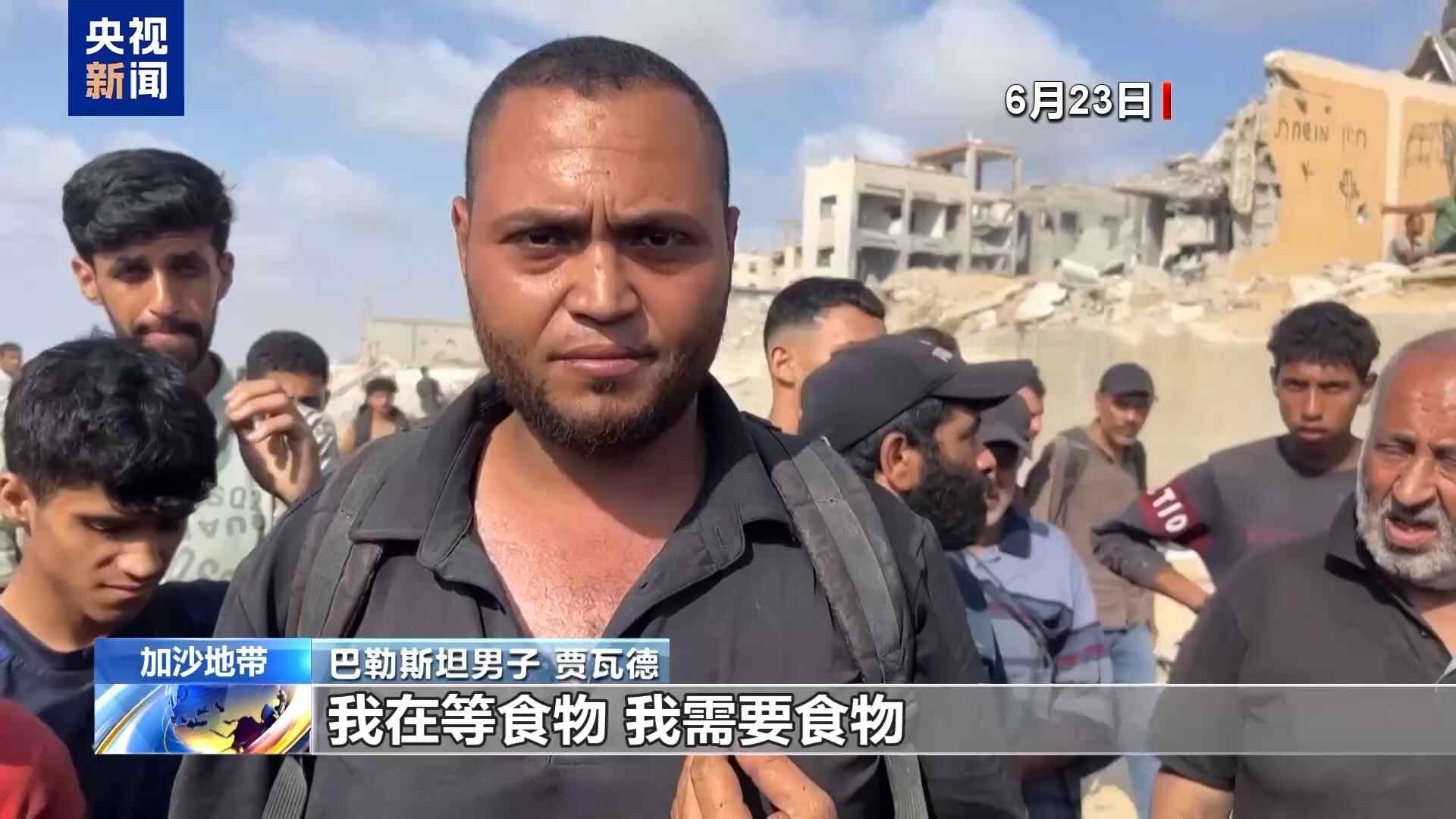 巴勒斯坦男子 贾瓦德:我在等食物,我需要食物,我是人,需要吃饭。但我没有食物,也没有住处,所有人都精疲力竭了。我们在那等着,我发誓,就像是在向死亡靠近,没有解决办法。要是想给我们食物,就给我们,要是不想给我们食物,就杀了我们。