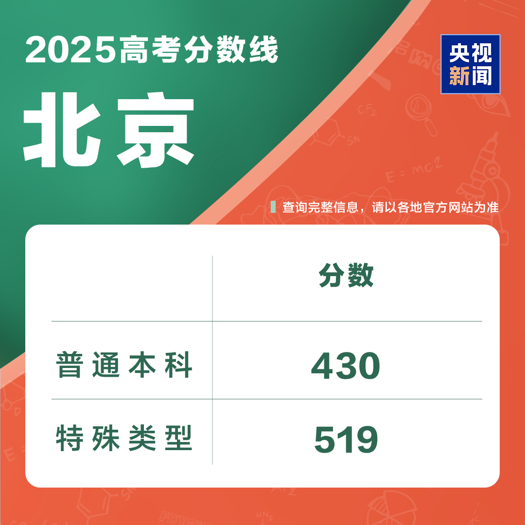 今天(25日),北京市2025年普通高校招生录取最低控制分数线公布。