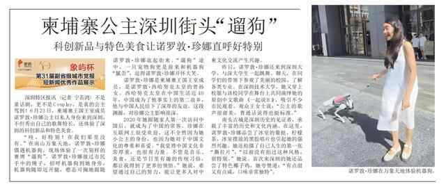 深圳特区报讯(记者 宁若鸿)不是童话剧,更不是Cosplay,是真的公主驾到!6月23日,柬埔寨王国王室成员诺罗敦·珍娜公主以私人身份来到深圳,不但秀出自己的歌舞特长,还体验了深圳的科创新品和特色美食。