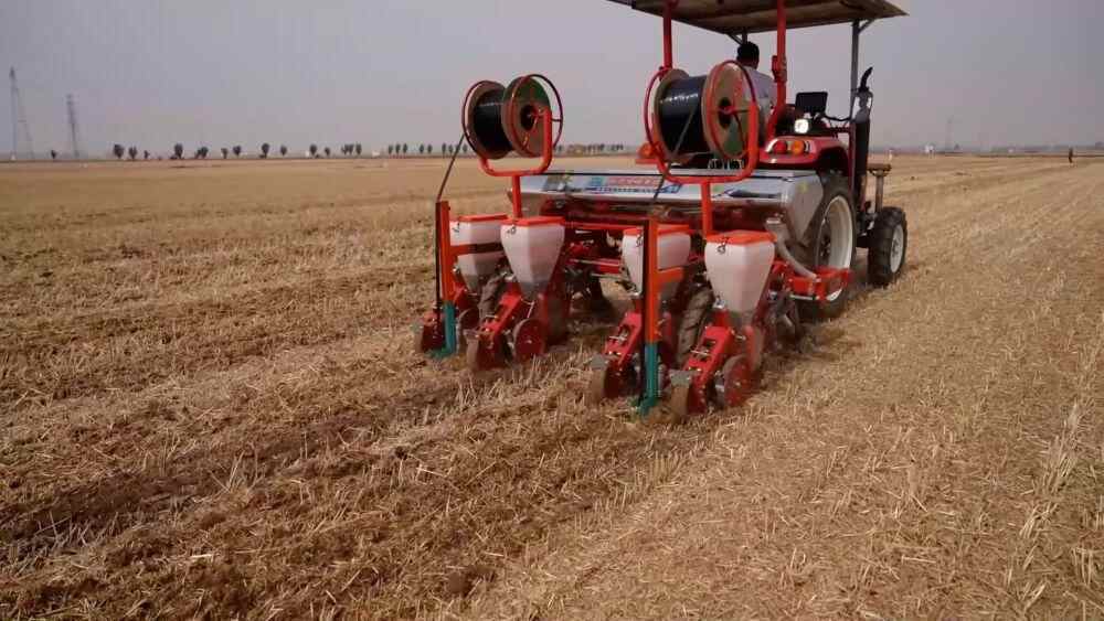 在安阳市滑县小铺镇的高标准农田内,无人驾驶精量播种机成为田间“主角”。