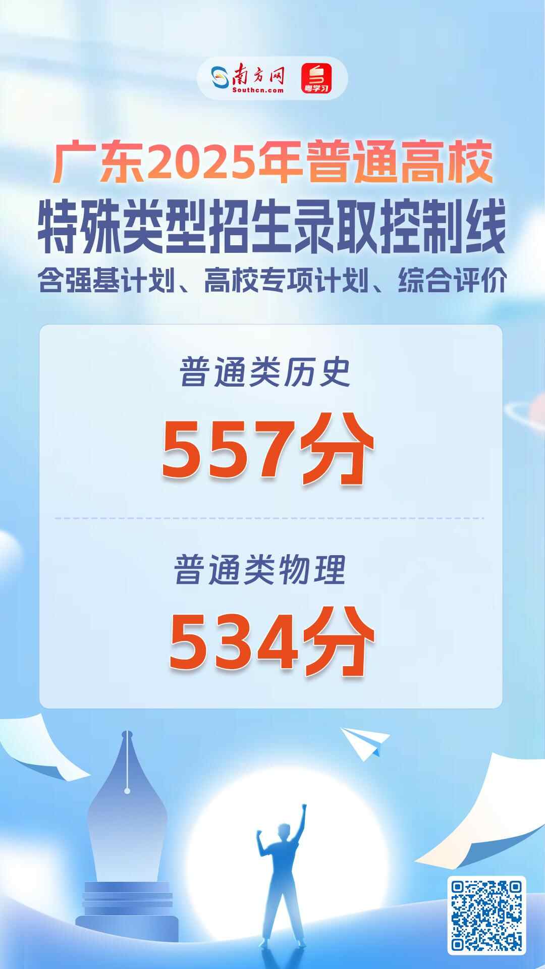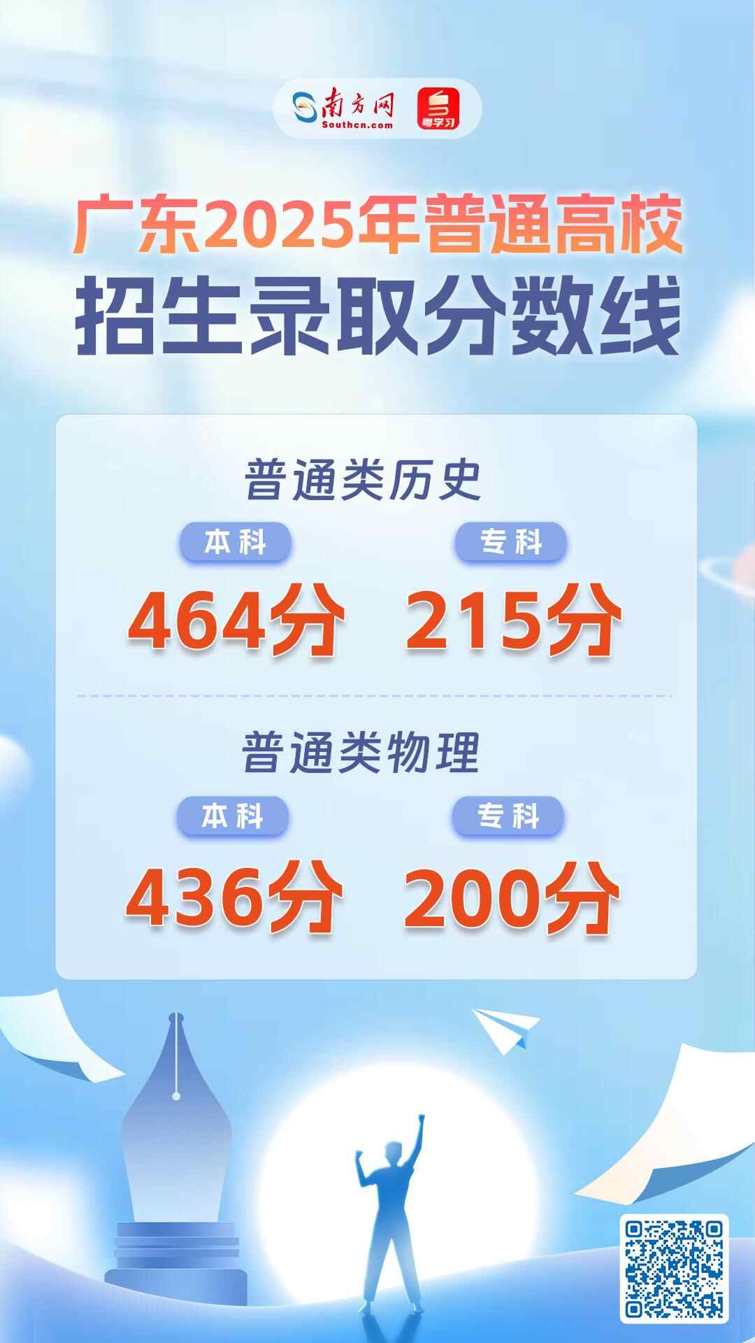 据广东省教育考试院消息,经省招生委员会研究决定,广东省2025年普通高校招生各批次录取最低分数线如下:
