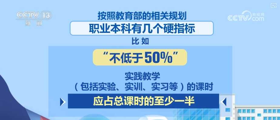 ·“不低于50%”——实践教学(包括实验、实训、实习等)的课时应占总课时的至少一半。