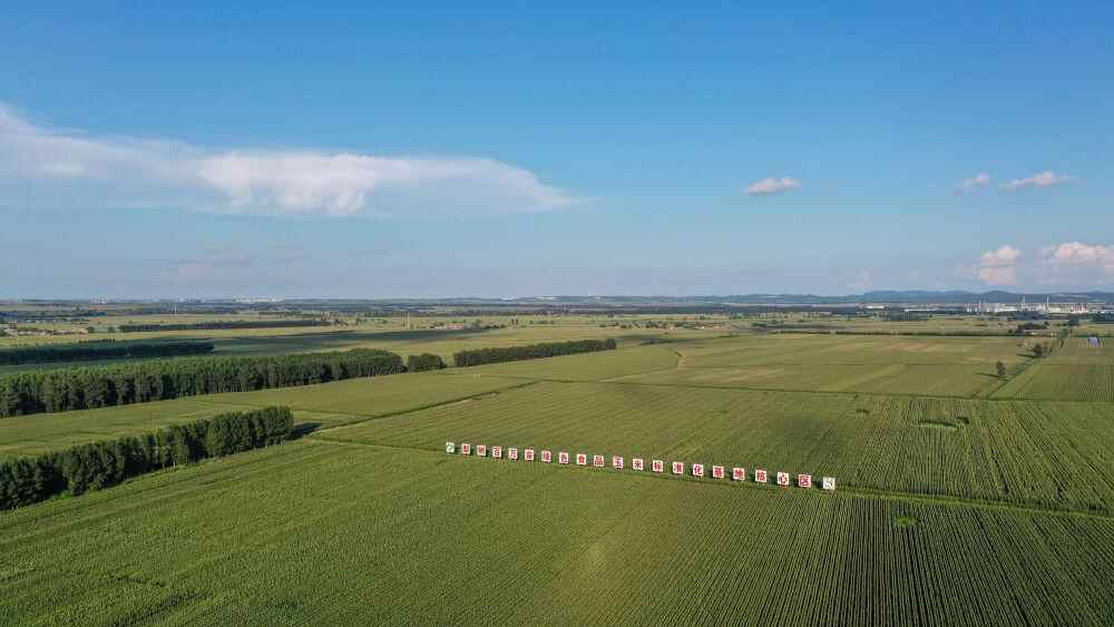 2024年8月8日拍摄的吉林省梨树县国家百万亩绿色食品原料(玉米)标准化生产基地核心示范区(无人机照片)。
