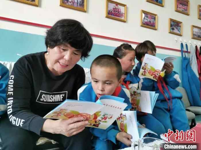 吾吉和学生一起阅读书籍。 张晓敏 摄