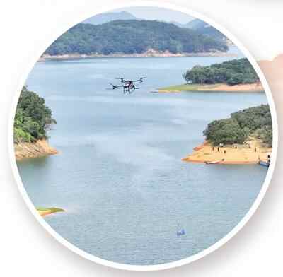 广东茂名高州市平山镇湾边岛,无人机在运荔枝。钟志辉摄(人民视觉)