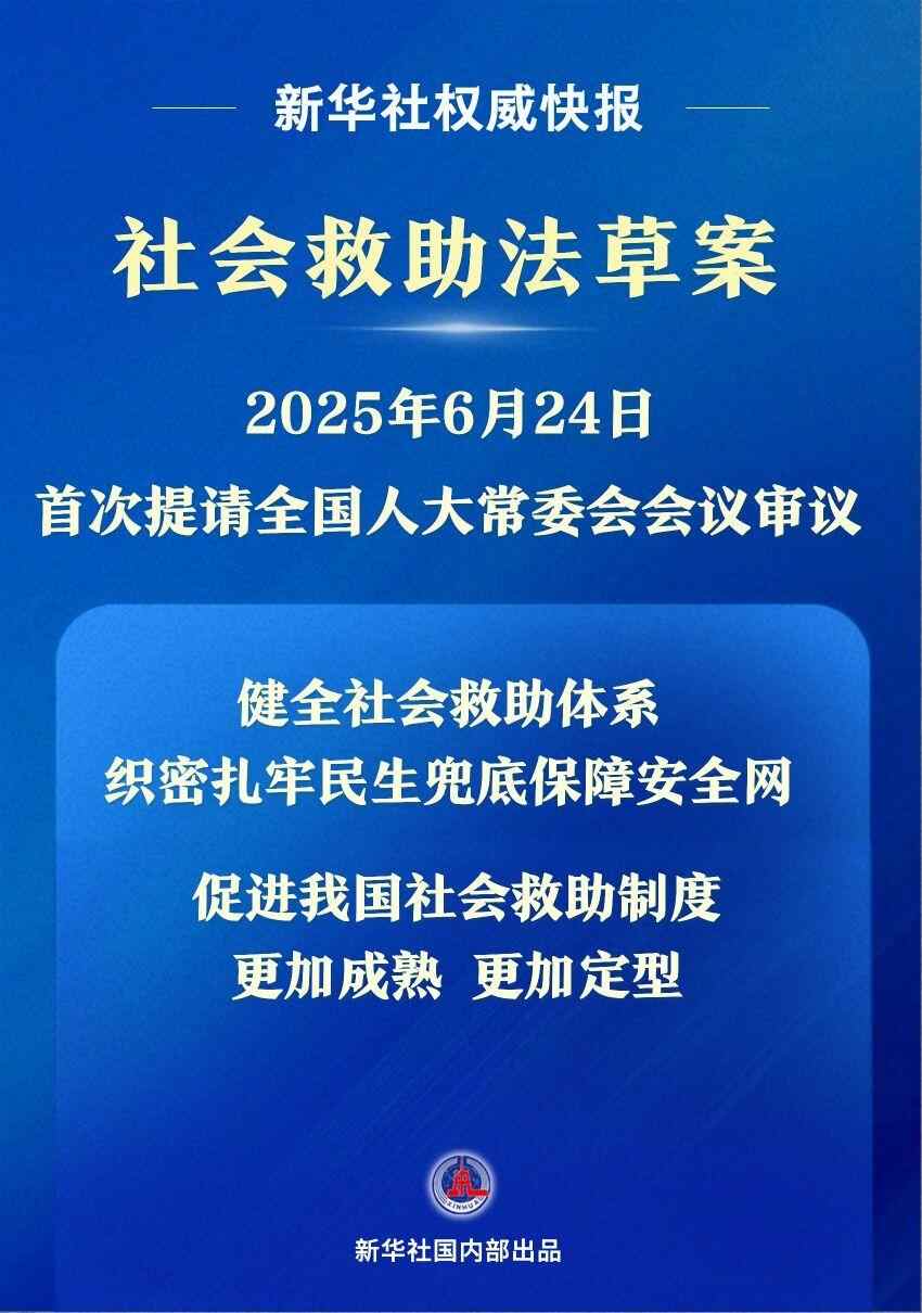 《中华人民共和国社会救助法(草案)》6月24日首次提请全国人大常委会会议审议。草案共7章76条,主要包括总则、救助对象和内容、救助程序、社会力量参与、救助管理和服务、法律责任、附则等内容。