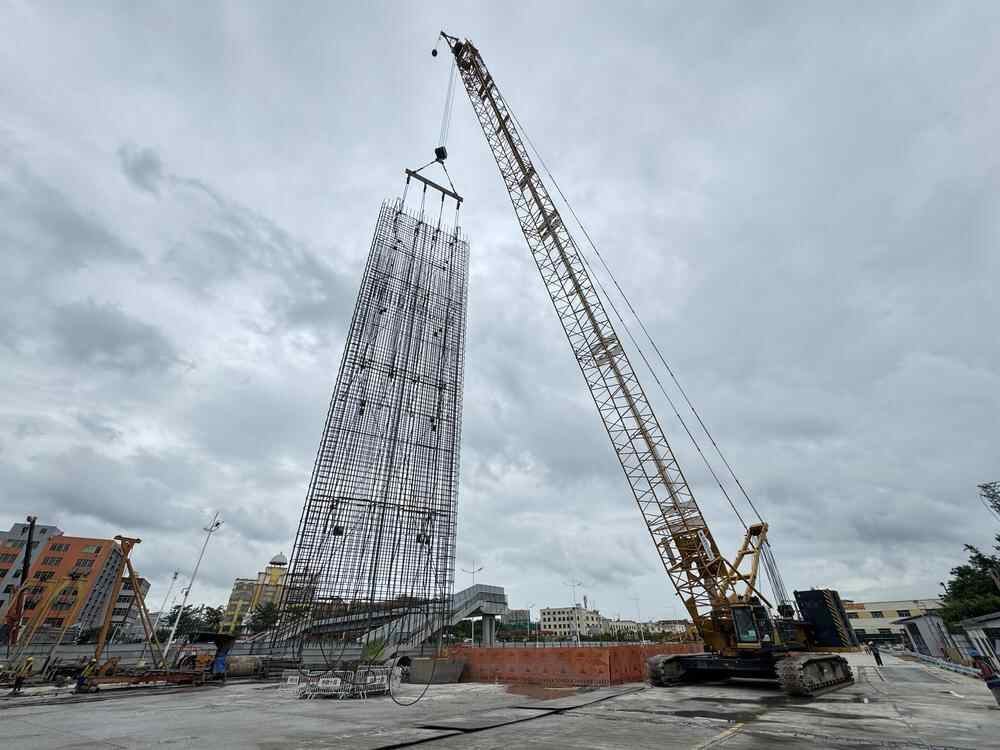 同时,建设者们通过实地考察、数据分析及方案研讨,施工采用“旋挖钻引孔+双轮铣”组合工艺,高效、安全地克服复杂地层成槽难题,大幅提升整体施工效率,减少设备损耗。此外,地铁建设者们还通过超声波探伤仪对钢筋笼焊缝进行无损检测,使用全站仪对吊点位置进行精确定位,确保钢筋笼焊接质量和吊装平衡。