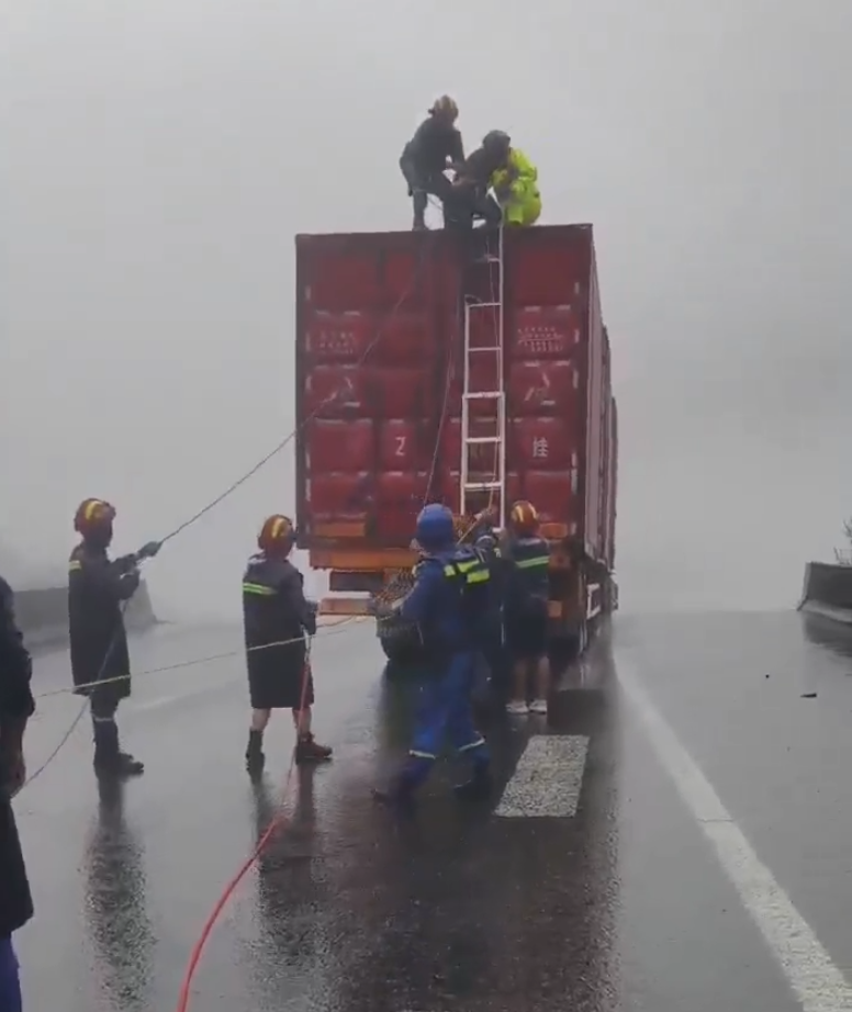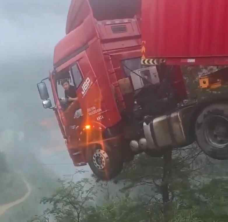 6月24日清晨,多名网友发布视频称,G76厦蓉高速贵州三都县至榕江县路段一高架桥发生垮塌事故。一段现场视频显示,一辆红色货车车头已悬空,驾驶室仍挂在残桥边缘,司机被困其中,现场群众高喊“你命大啊,危险啊!只能等消防来,没信号!”该路人还称桥下有两辆车。