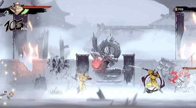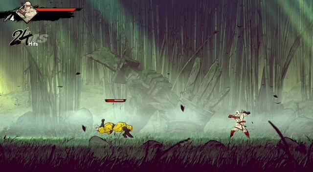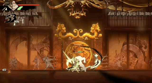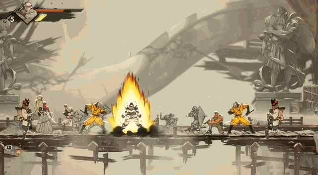 Lizardcube不仅大大增强了战斗的比重,将各种连携,浮空等格斗玩法融入其中,并且在与敌兵的交互上也十分考究。在这款游戏里,增加难度的方式并不是限制主角乔武藏的能力,而是为敌人增加许多特殊能力,有些带有护甲,有些能够进行反击,避免了许多游戏很容易出现的打木桩式交互。