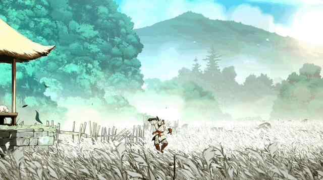 Lizardcube所擅长的精美2D手绘图像,也在这款游戏里得到了进一步的提升。游戏的场景也比他们以前的游戏更加壮丽,细节更丰富,也更有戏剧性。在游戏开场,主角乔武藏在山谷的家中享受片刻的宁静,此时微风吹拂,山间的树林摇曳,落叶在空中飘荡,几只白鸟穿过温和的日光,令我不由得在此驻足良久。