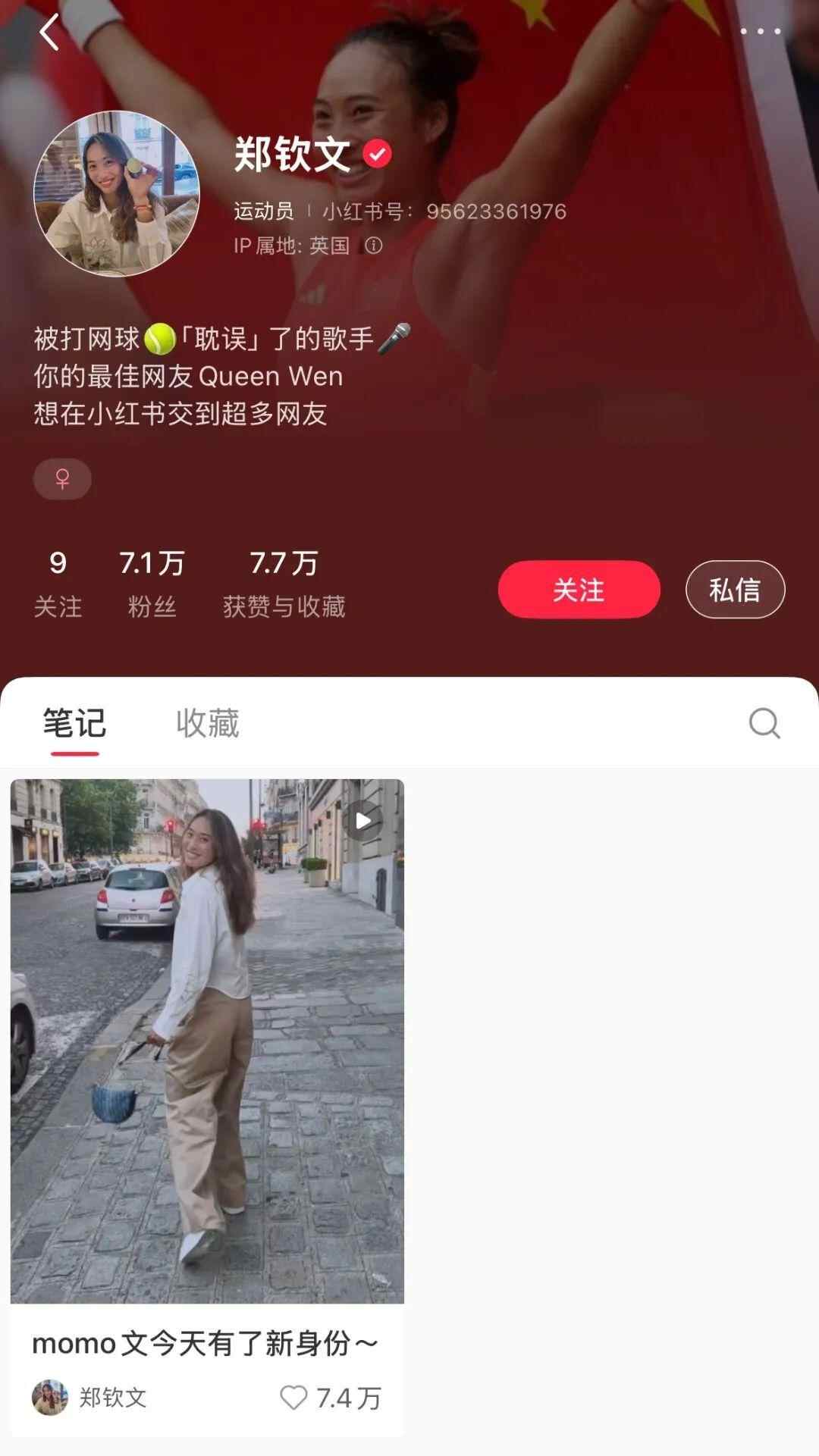 在账号简介中,郑钦文表示自己是被网球“耽误”了的歌手,“你的最佳网友Queen Wen,想在小红书交到超多网友”。目前,郑钦文新账号已拥有7.1万粉丝。