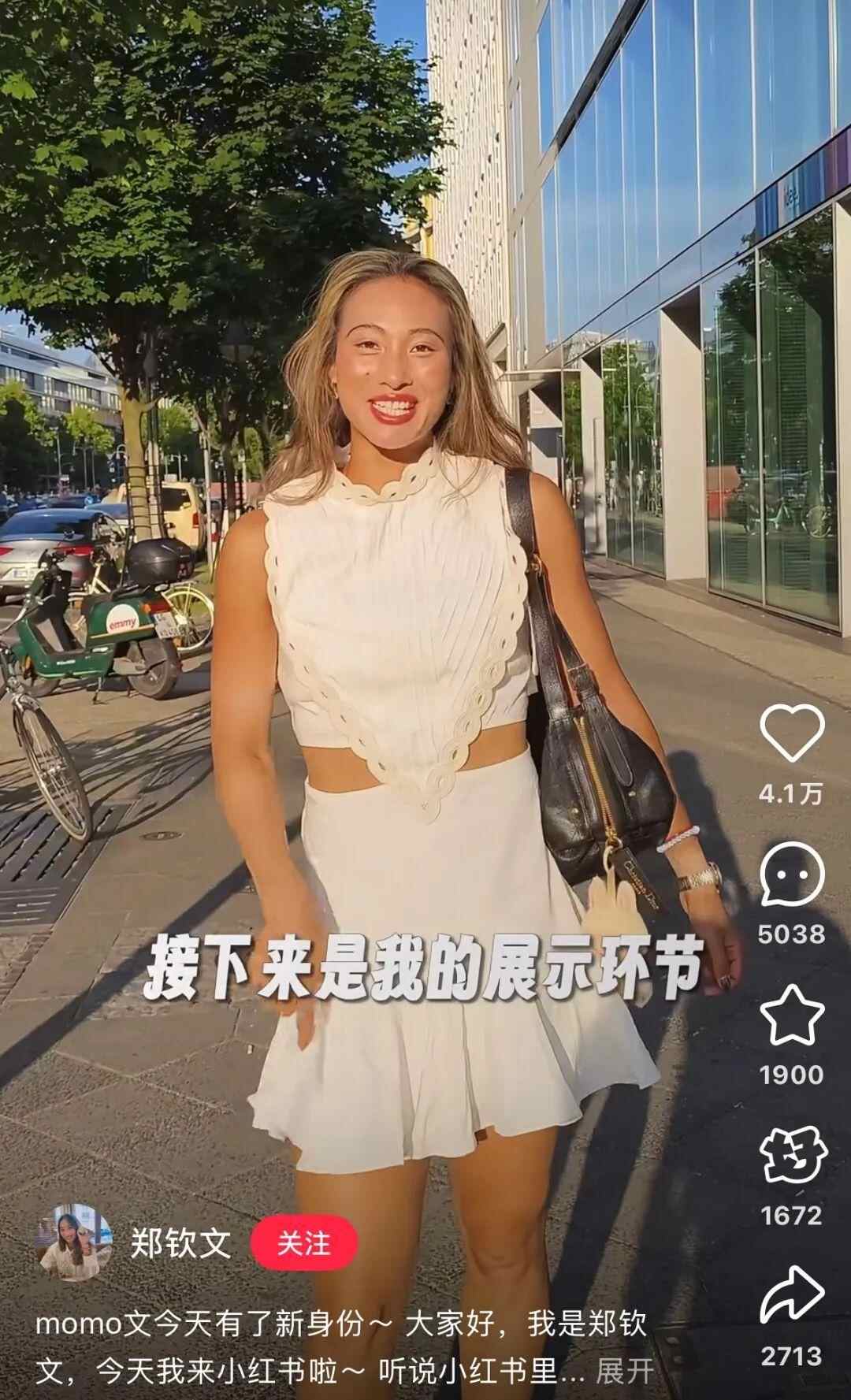 文案中,郑钦文表示:momo文今天有了新身份~大家好,我是郑钦文,今天我来小红书啦~听说小红书里各个领域都有非常厉害的网友,欢迎大家来自荐~接下来我会在小红书和大家分享网球之外的日常生活,比如我的一些小爱好,唱歌、跳舞、时尚穿搭等,大家也可以和我分享可可爱爱的毛孩子们(听说我还有个外号叫猫猫大人),期待在小红书和大家交个网友。