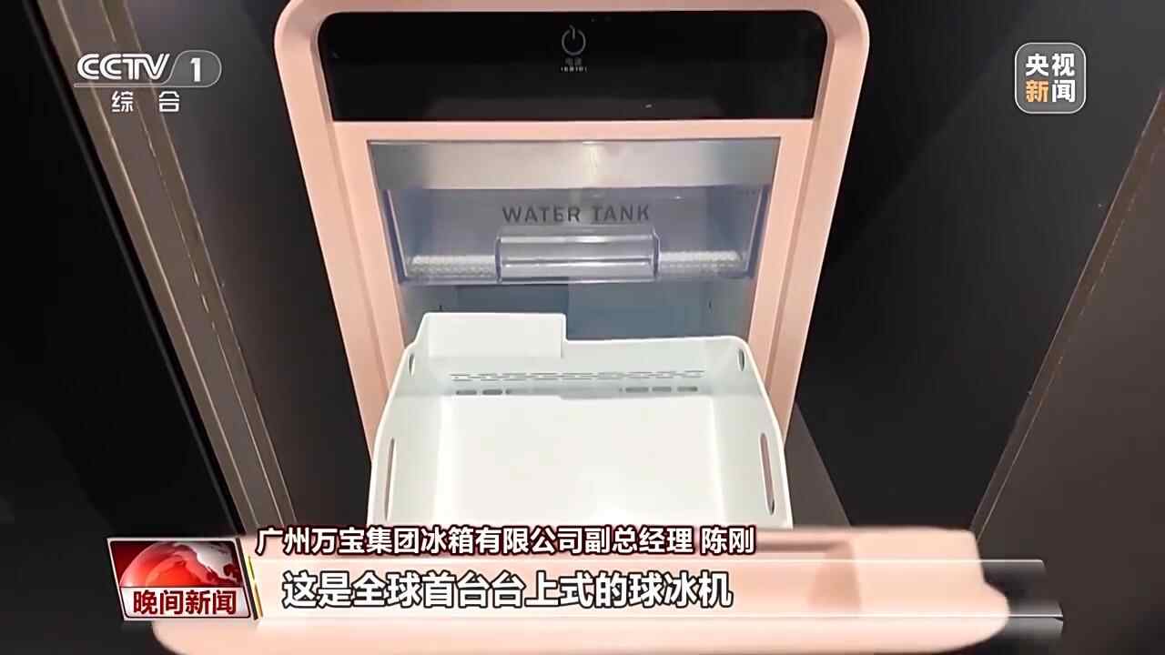 广州万宝集团冰箱有限公司副总经理 陈刚:这是全球首台台上式的球冰机。球冰是所有的冰种当中最难做的,而且你要把它做透做圆是一个很大的挑战。我知道有一些全球的头部企业,他们研究了十年还没研究出来,我们自己也研究了四五年。创新对于我们这种制造型企业来讲是必由之路。