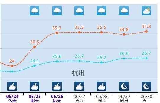 像是上海、杭州、长沙等地明天最高气温将回升至30℃左右,26日至27日最高气温将升到36℃至37℃,或创下今年以来新高,其中杭州可能连续出现高温。