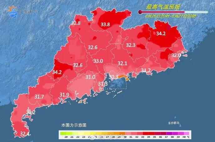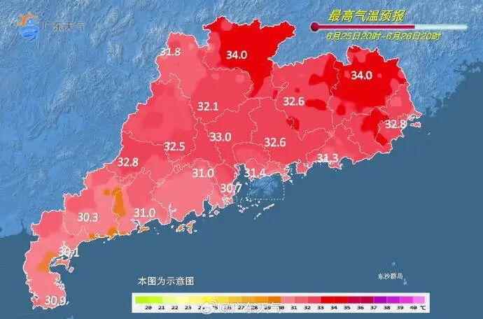 广东高温黄色预警信号发布标准及防御指引(广东省气象服务中心制图)