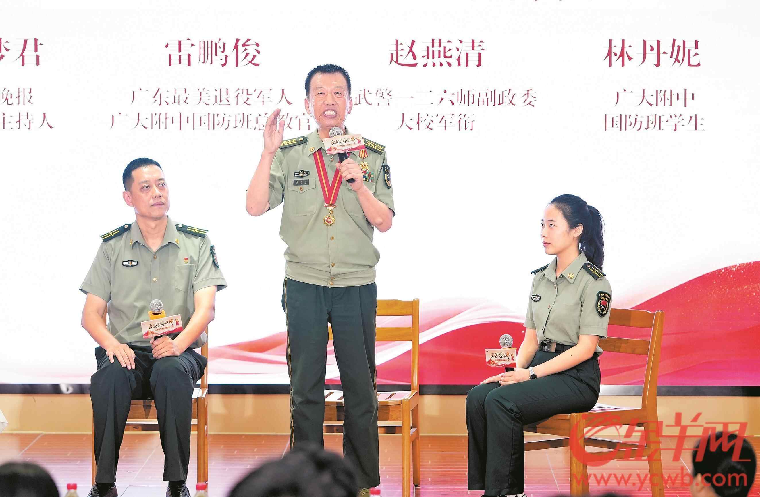 “您的参军志向是否受父亲影响?”“如何让抗战精神触达‘Z世代’?”在“三代人的抗战精神传承”环节,赵燕清、广东最美退役军人雷鹏俊与广州大学附属中学国防班学生林丹妮展开了一场跨越时空的交流。