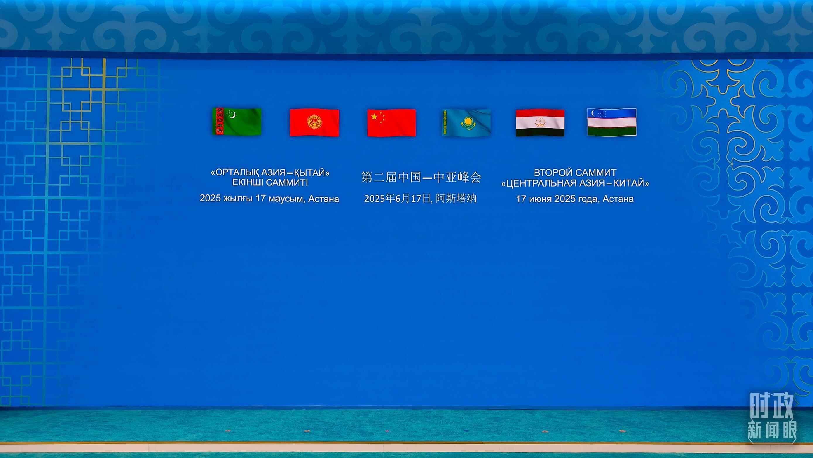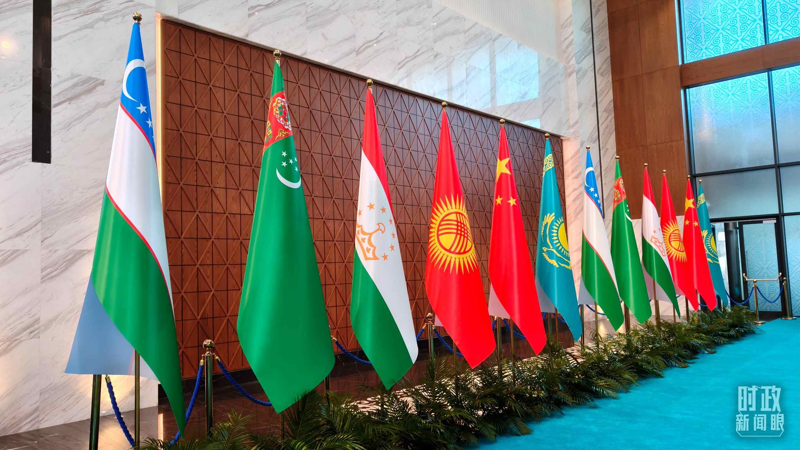 当地时间6月17日下午,阿斯塔纳独立宫前,各国旗帜迎风飘扬。习近平主席和中亚五国元首步入会场,集体合影后,六国元首围坐圆桌前,共同擘画中国—中亚机制发展的新蓝图。