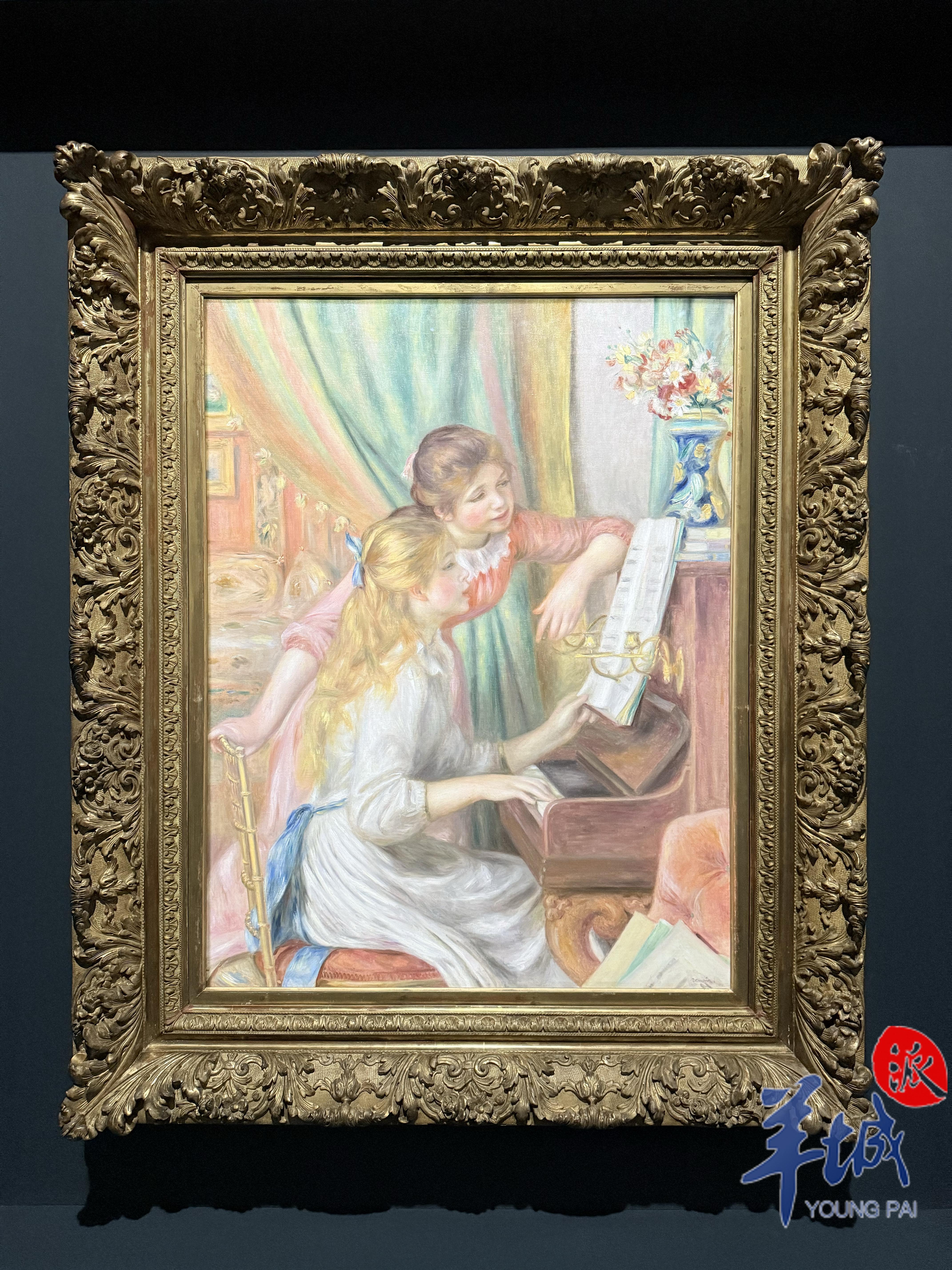 展览同时呈现了奥古斯特·雷诺阿与保罗·塞尚——两位风格殊异却同为印象派转型关键人物的代表作品。雷诺阿的《钢琴前的女孩》是其首件被纳入法国国家收藏的画作,描绘了两位沉浸于音乐中的少女。该作不仅静态地呈现了演奏瞬间,还仿佛传递出音乐的律动,唤起视觉与听觉的双重感知。