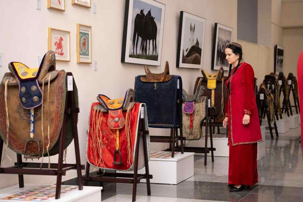 2025年6月3日,一名女子在土库曼斯坦首都阿什哈巴德参观“骐骥驰骋——2025中国马文化展”。新华社发