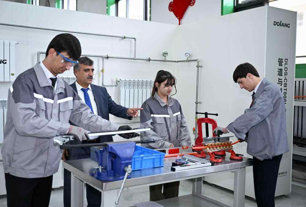 2025年5月31日,学生们在塔吉克斯坦首都杜尚别的鲁班工坊内学习。新华社记者 李任滋 摄