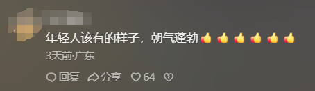 不少网友纷纷点赞,表示小伙朝气蓬勃,“热血和青春在他身上体现得淋漓尽致”。