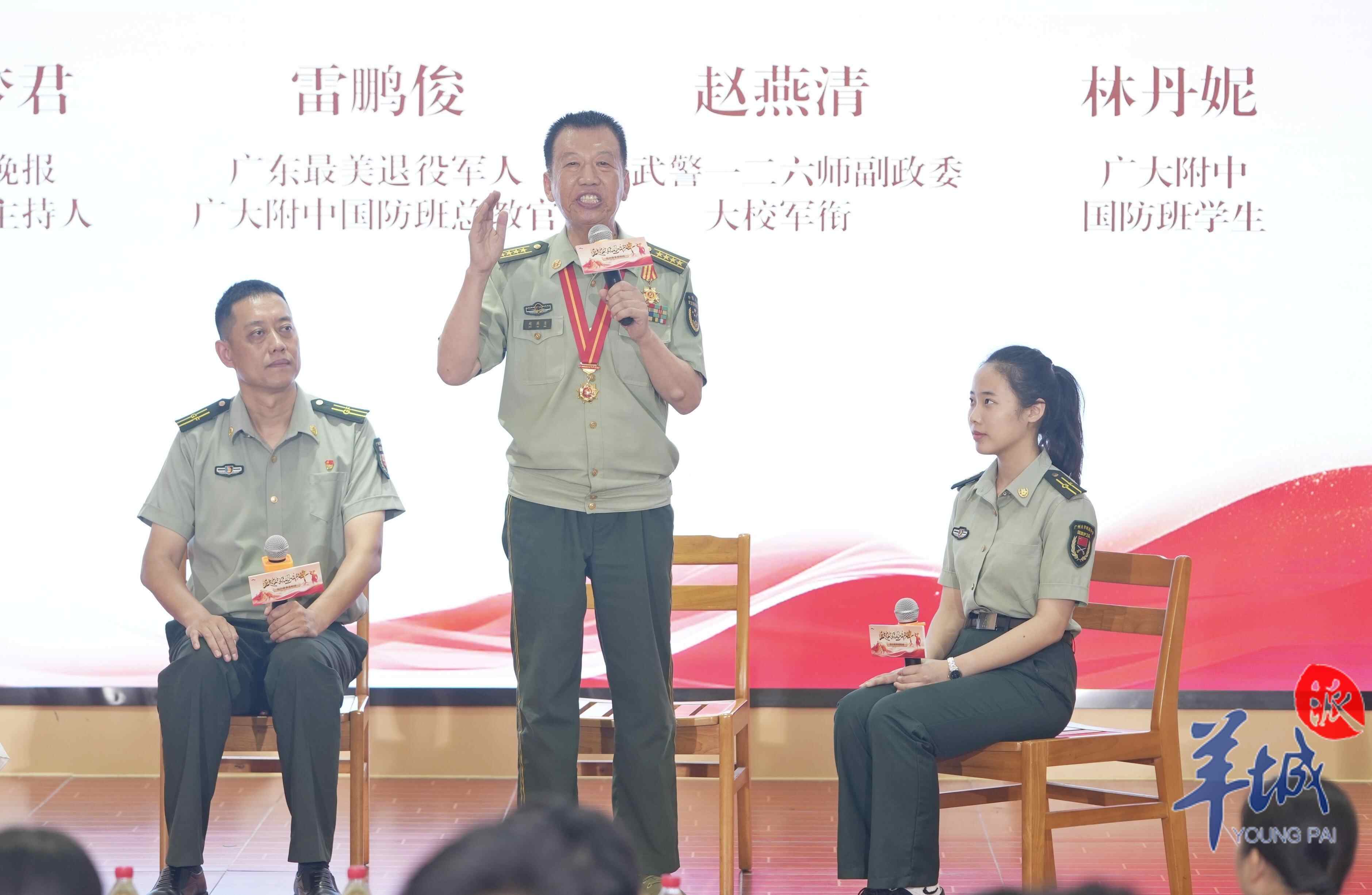 “您的参军志向是否受父亲影响?”“如何让抗战精神触达‘Z世代’?”在“三代人的抗战精神传承”环节,赵燕清、广东最美退役军人雷鹏俊与广州大学附属中学国防班学生林丹妮展开了一场跨越时空的交流。