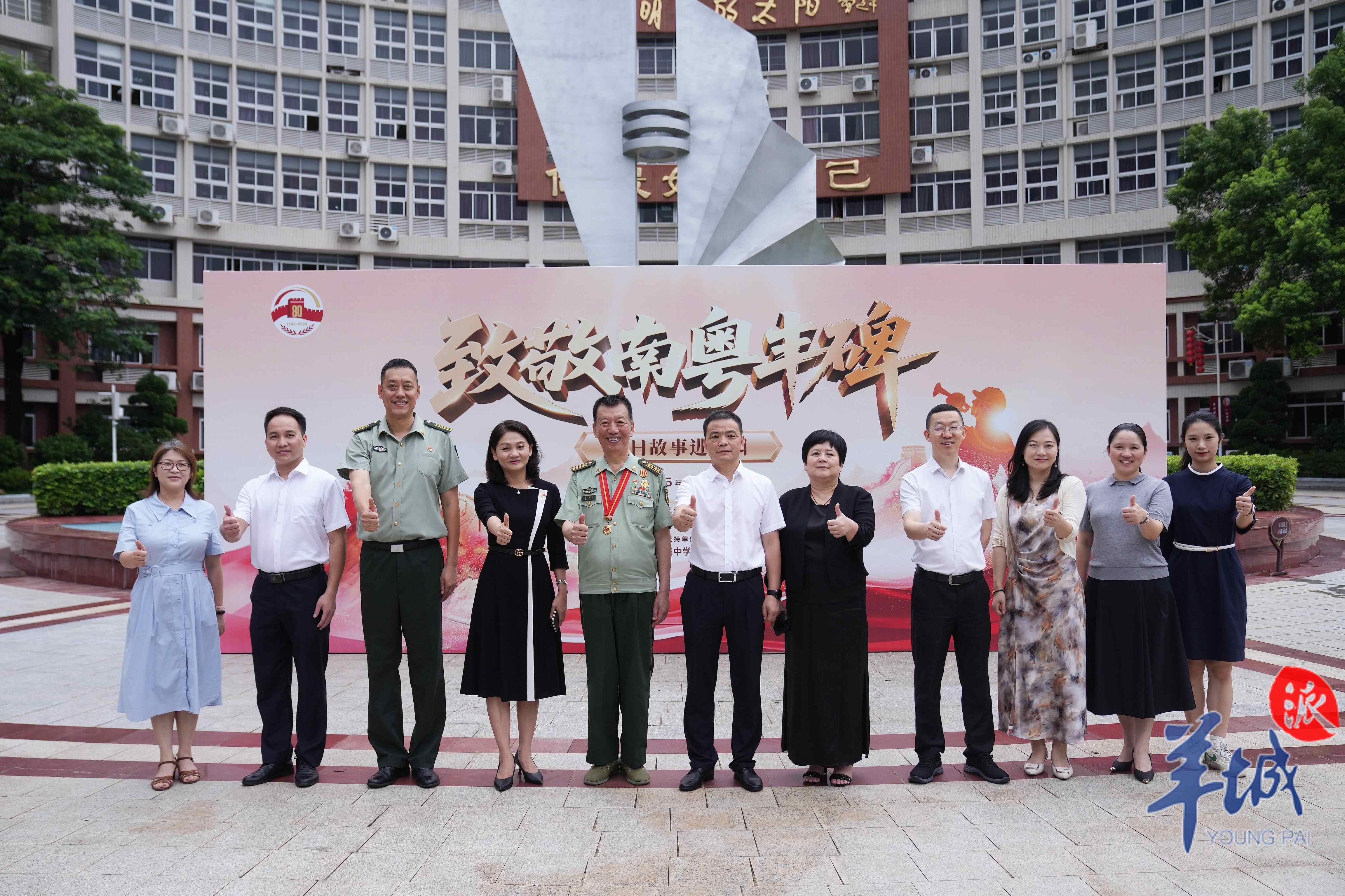 今年是中国人民抗日战争暨世界反法西斯战争胜利80周年。烽火岁月远去,英雄精神长存。18日,由广东省退役军人事务厅与羊城晚报报业集团联合主办的“致敬南粤丰碑”抗战故事进校园活动在广州大学附属中学(大学城校区)举行。广东省退役军人事务厅办公室(政策法规处)主任曹晓敏,羊城晚报报业集团专职编委黄卫红,广州大学附属中学党委副书记王映等领导出席活动。