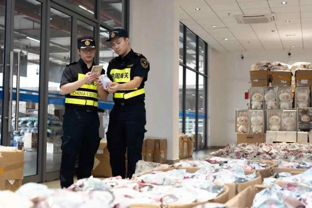 6月12日凌晨1时,在港珠澳大桥珠海公路口岸出境货运查验场,现场关员对一辆转关出口的跨境货车进行机检查验时,发现一批灰棕色纸箱里装有大量盲盒及毛绒玩具,共计10465件。其中部分外包装上印有“POP MART”(泡泡玛特)的品牌标识,其他商品均无品牌标识,但外形IP均为泡泡玛特当前最热门的LABUBU系列。关员现场初步判断该批盲盒及毛绒玩具涉嫌侵权。
