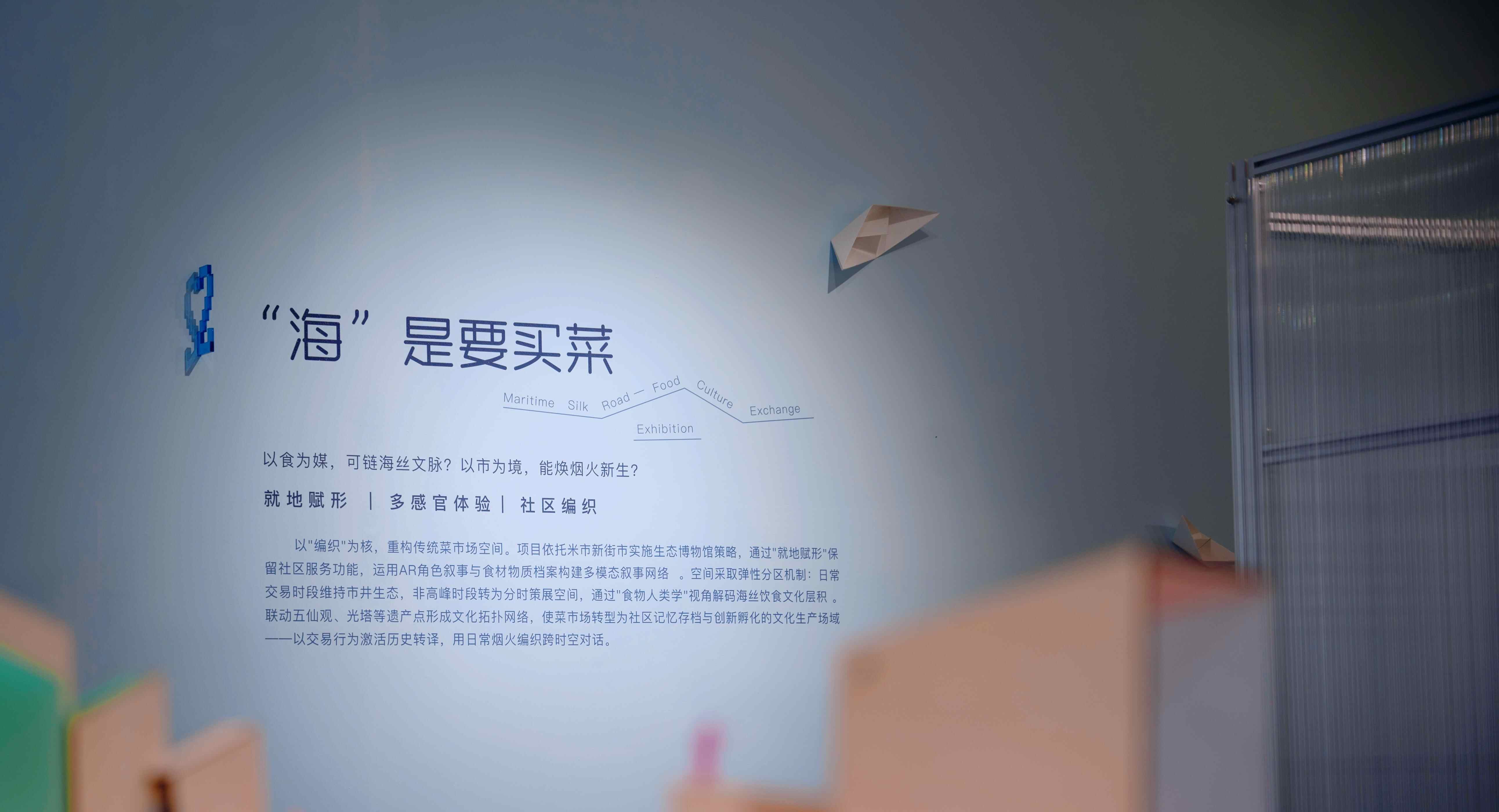蔡紫茜和记者分享了他们的创作历程,为了实现双重功能在同一空间的和谐共生,让海丝饮食文化的历史叙事能够完美融入当代的市井烟火气,他们在菜市场“蹲点”了很长时间,分析了解顾客、摊主等不同群体的价值需求,掌握每天人流潮汐的变化规律。