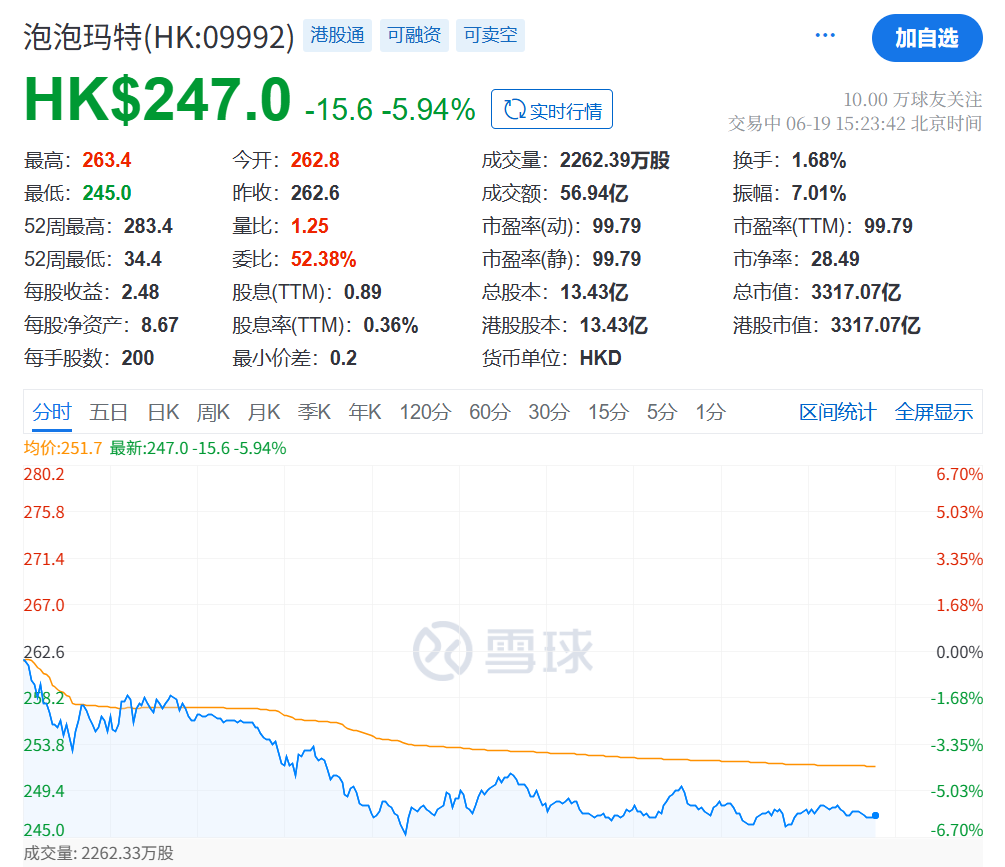 或受消息影响,泡泡玛特今天股价大跌约6%!