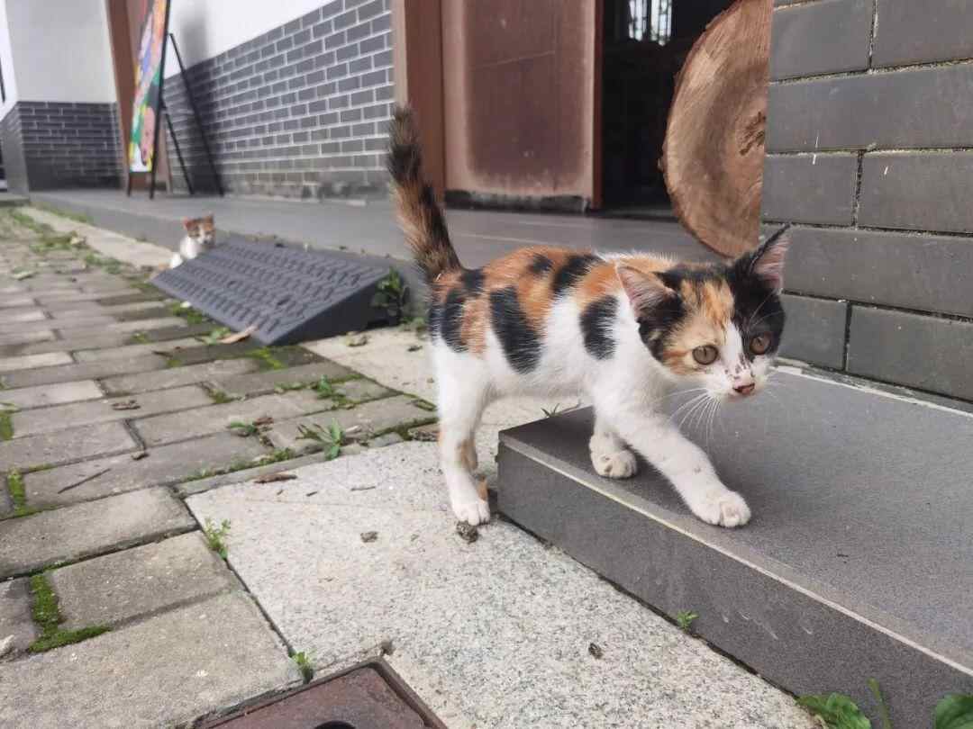 此外的重要任务,是去看翁城诗猫。它们得到了海文无微不至的照顾,长势喜人,非常活泼,不停在我脚下蹭来蹭去,还跳上桌子来吻我茶杯。我抚摸它们的脖子,它们就扬起头眯上眼,极度享受的样子。