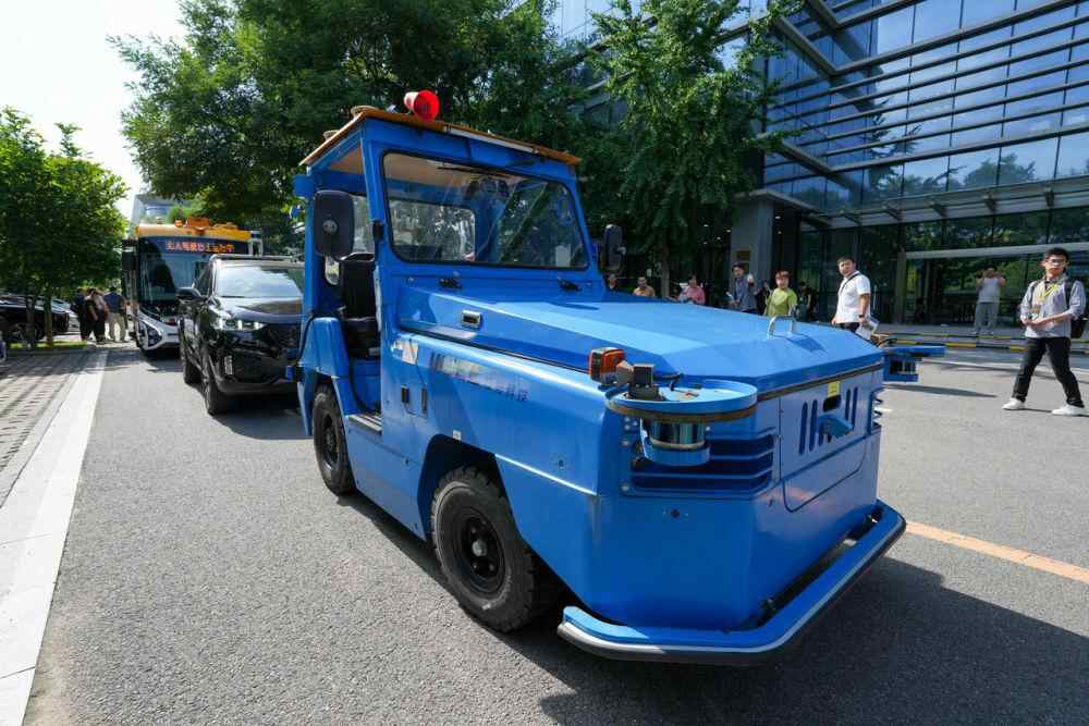6月16日,在北京驭势科技拍摄的一款用于机场物流作业的无人驾驶牵引车。新华社记者 鞠焕宗 摄