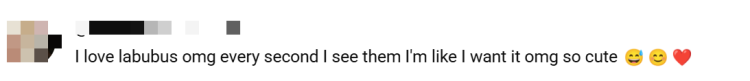 “我爱LABUBU!天啊,看到它的每一秒我都好想拥有它,它太可爱了。”