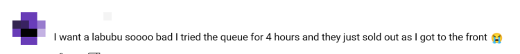 “我太想拥有一个LABUBU了,我曾经尝试排了4个小时的队,但是轮到我的时候正好卖完了。”